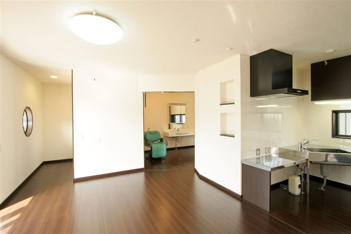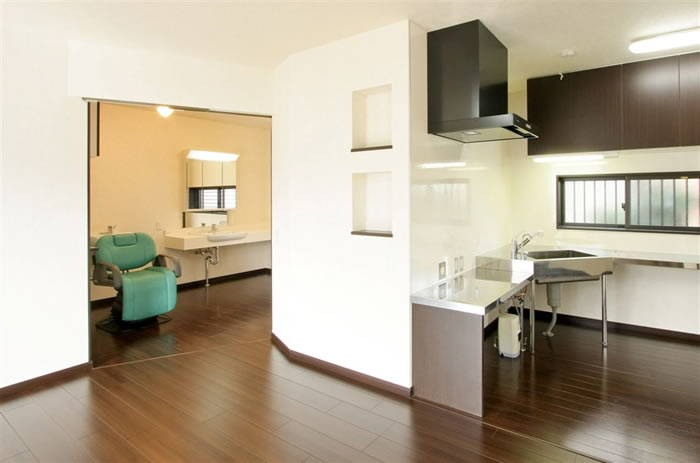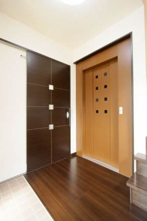 ハンディキャップをお持ちの若い活動的な女性が施主様。隣地にお住まいのご家族と、コミュニケーションを取りながら、将来にむけて、車椅子での自立生活に対応出来る住まいを計画。安全で、機能的なホームエレベーターと、外部アプローチに段差解消機を設置。車椅子で、各空間への移動が、スムーズに行なえる様、スペースや導線を考慮し、車椅子の友人が宿泊出来るゲストルームも計画。ハンディを感じる事無く、豊かで楽しいライフスタイルを過ごせる住まいをご提案。