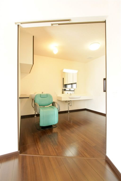 美容師の妹様から、可愛い専用のシャンプー椅子がプレゼントされています。